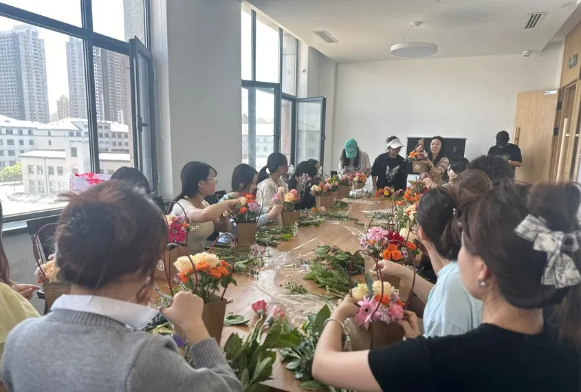活动伊始,郑老师介绍了各种花材的名称和特点。并详细介绍了插花艺术中需要的知识与技巧,例如色彩搭配原则、空间布局特点以及花束包装和情绪表达等。大家充分发挥自己的想象力和创造力,用自己的巧手修剪、搭配花枝。活动现场,花香四溢、欢声笑语。在愉快的氛围中,大家制作出了一个个精美的插花作品,体验了创作的乐趣。
