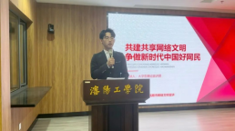 大学生理论宣讲团成员张乐、张祺曼、回思雨、董心月分别围绕“什么是中国好网民”“我国互联网发展现状”“我国网络存在的问题和情况”“共建网络文明,争做新时代中国好网民”四个方面作《共建共享网络文明 争做新时代中国好网民》主题宣讲。